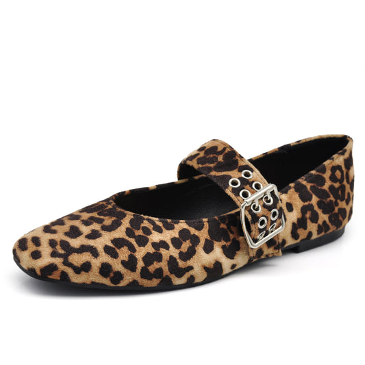 Ballerine A Punta Quadrata Friulane Scarpe Veneziane con Cinturino Largo Da Donna Q2569 leopardato maculato animalier