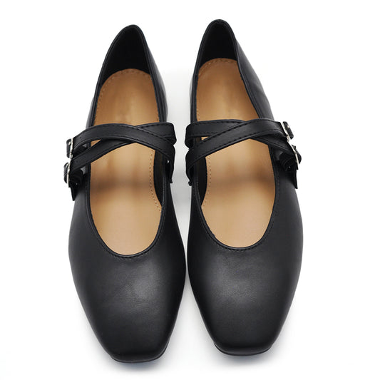 Ballerine A Punta Quadrata Friulane Scarpe Veneziane con Cinturino Da Donna Q2568