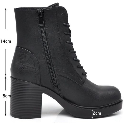 Anfibi Stivaletti Tronchetti Da Donna Tacco Medio Platform WZ688-100