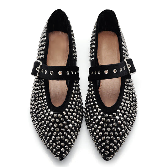Ballerine con cinturino da moda donna strass scarpe sposa basse glitterate eleganti J97