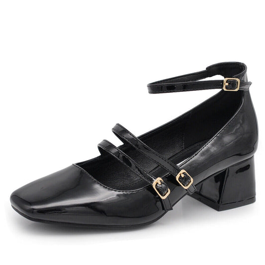 Décolleté Scarpe Da Donna Mary Jane Tacco Grosso Con Cinturini HF-90