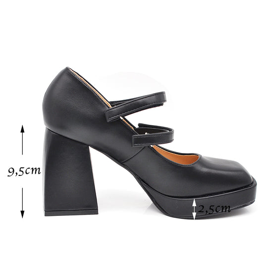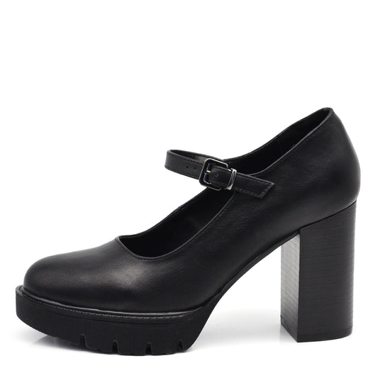 Décolleté Scarpe Da Donna Mary Jane Tacco Alto Grosso Con Cinturino MP70013-1 nero