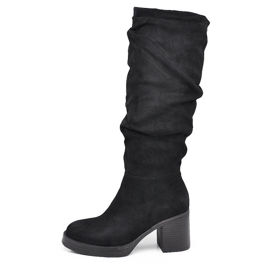 Stivali Camperos Stropicciati Donna Polpaccio Tacco Medio Grosso Camoscio GL21