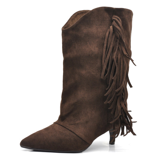 Stivali Donna A Punta Tacco Alto Stile Western – Alti al Ginocchio Camoscio Sintetico 6885