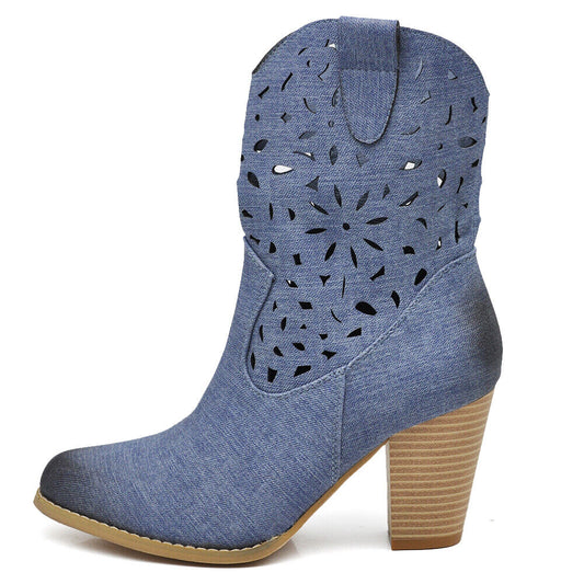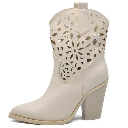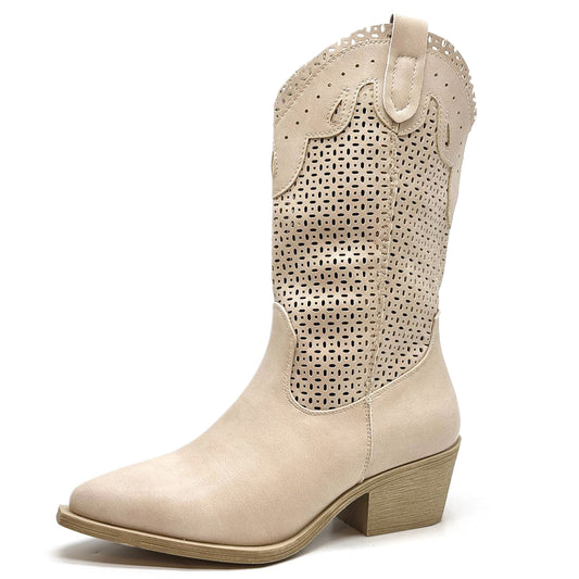 Stivali Stivaletti da Donna Camperos Tacco Texano Primaverili Traforati 6658