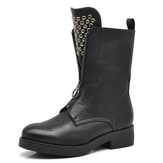 Stivali Stivaletti Platform Donna Anfibi Combat Boots Zip Borchie 6643