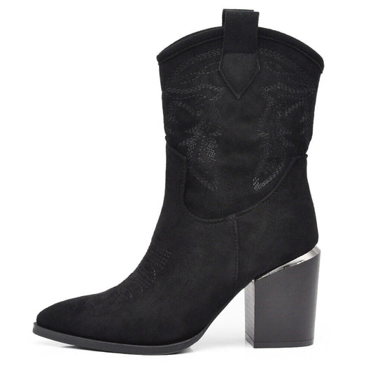 Stivali Stivaletti Da Donna Texani Cowboy Western A Punta Con Tacco Alto MP635