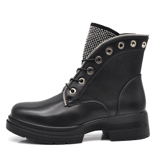 Stivali Stivaletti Donna Motociclista Anfivi Scarponcini Lacci strass Zip 6633