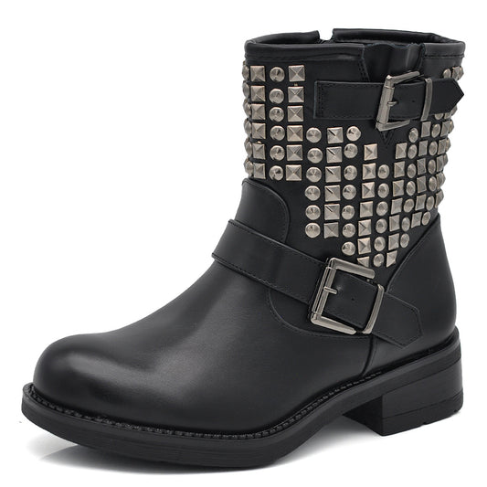 Stivali Stivaletti Donna Caviglia Anfibi Borchie Motociclista Biker S189 nero