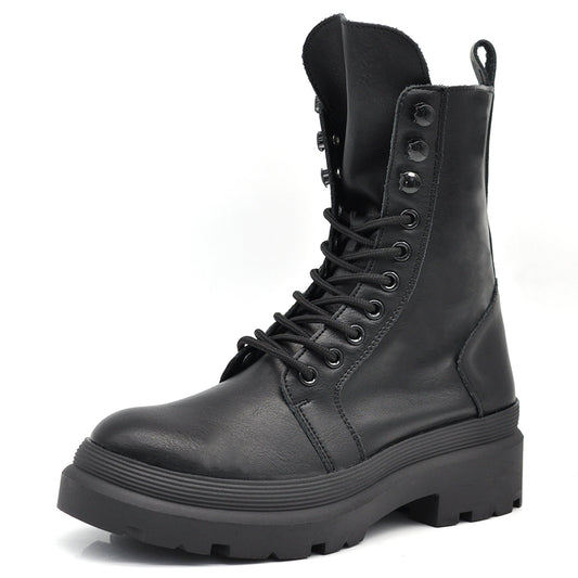Stivali Stivaletti Platform Donna Anfibi combat boots lacci Platform carrarmato MP752-1 nero