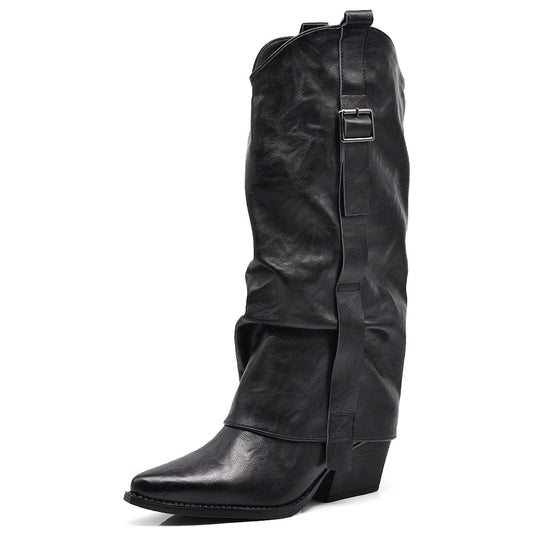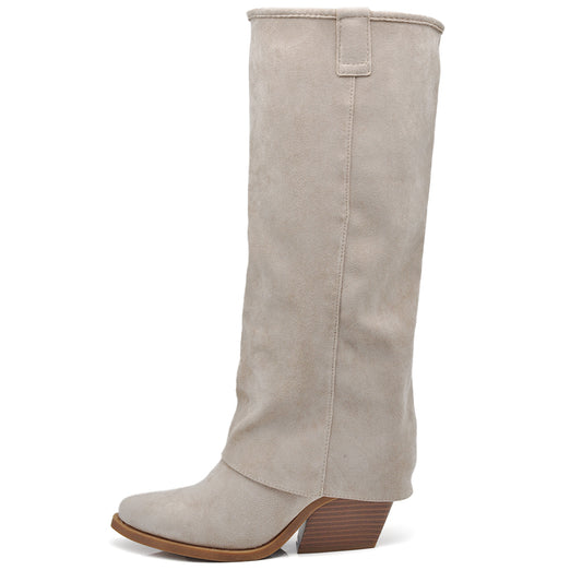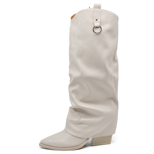 Stivali Texani Arricciati Da Donna A Punta Con Tacco E Ghetta Risvolto MP627