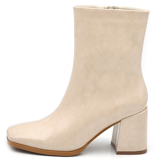 Stivali Stivaletti Tronchetti Da Donna Con Tacco Punta Quadrata Lucidi XG111
