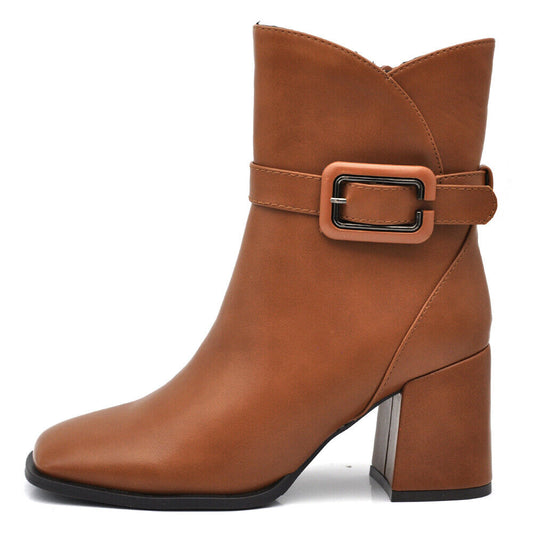 Stivali Stivaletti Tronchetti Da Donna Con Grosso Fibbia Punta Quadrata XG105