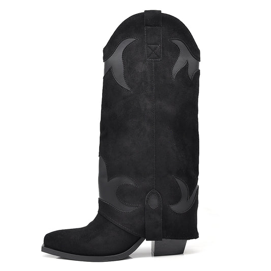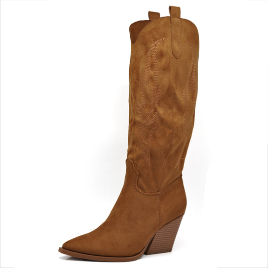 Stivali Texani da Donna in Pelle Scamosciata Design Ricamato A9979