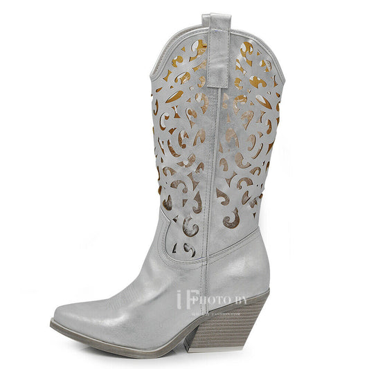 Stivali Traforati Camperos Texani A Punta Ginocchio Western Da Donna LY80-3