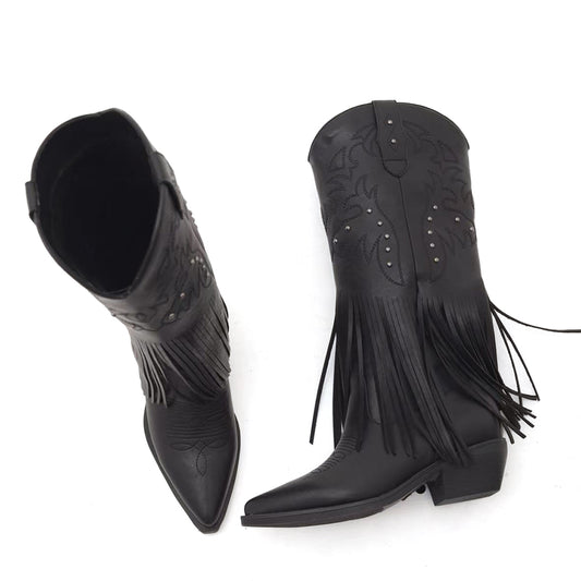 Stivali texani cowgirl western donna con frange punta affusolata boho chic MP2702-2
