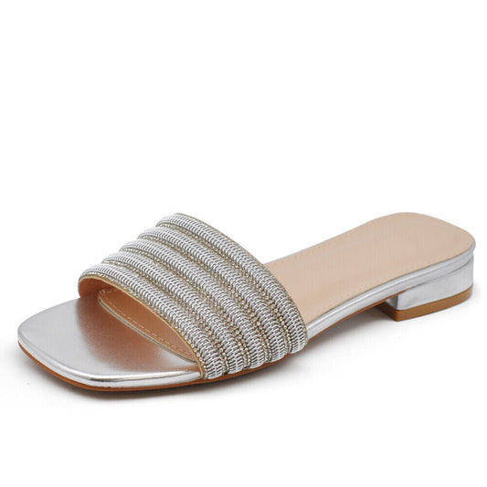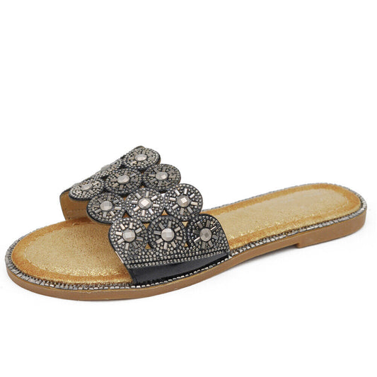 Scarpe Da Donna Ciabatte Sandali Bassi A Fascia Con Pietre Strass GH-806