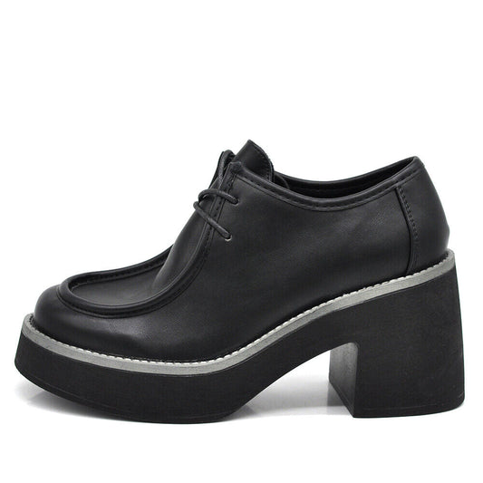 Mocassini Loafers Scarpe Da Donna Con Tacco Lacci Stringati MP353-2 nero beige