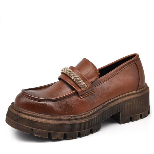 Scarpe Mocassini Loafers Slip On Da Donna Con Morsetto Platform 899