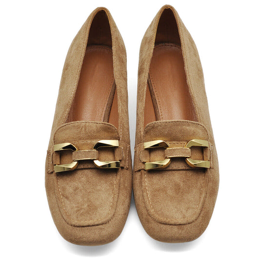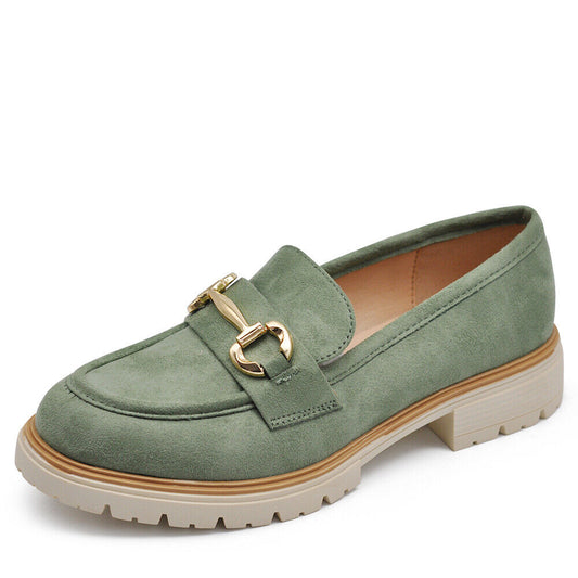 Scarpe Mocassini Loafer Camoscio Da Donna Con Tacchetto Morsetto 9638 nero khaki