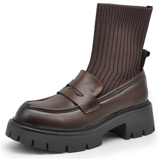 Scarpe Stivaletti Mocassini Loafer Slip On Con Calzini Da Donna Platform XG108