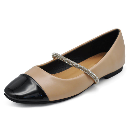 Scarpe Da Donna Ballerine Bicolori Con Cinturino Strass Punta Lucida 505