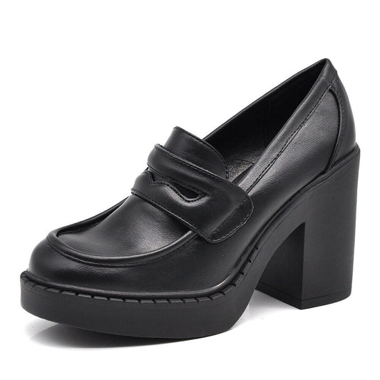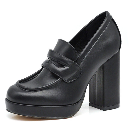 Mocassini Loafer Slip On Décolleté Da Donna Tacco Grosso 9cm MP355-3 nero talpe