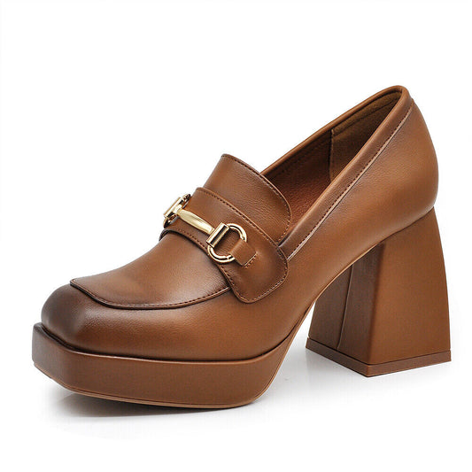 Mocassini Loafer Décolleté Da Donna Tacco Grosso MP361 nero cuoio bianco beige