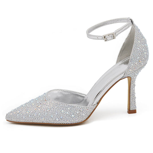 Scarpe Décolleté Da Donna Cerimonia Gioiello Tacco Elegante Strass 2K1A-L9062-01 nero argento