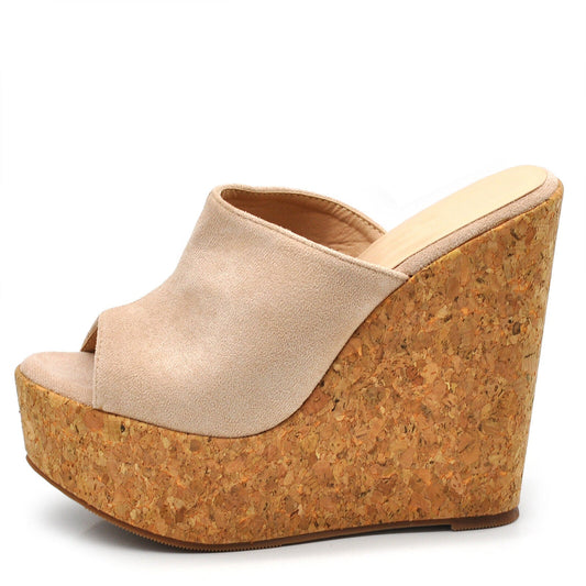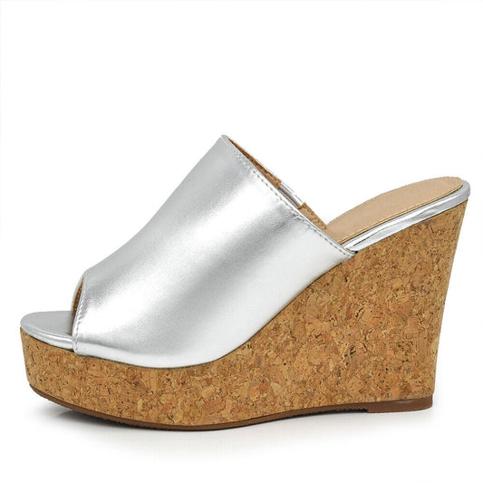 Scarpe Sandali Ciabatte Zoccoli Da Donna Con Zeppa Alta Simil Sughero M627
