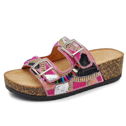 Scarpe Sandali Ciabatte Da Donna Con Fibbie e Zeppa Strass Pailettes GH-802