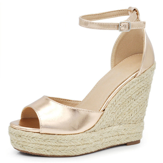 Scarpe Sandali Espadrillas Da Donna Con Platform Zeppa Corda Cinturino X7M0096