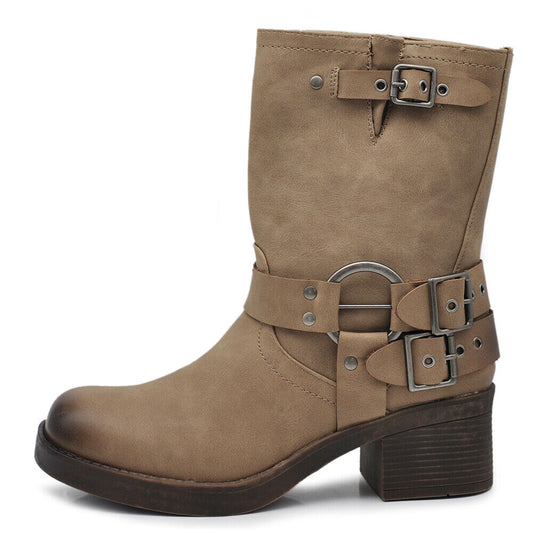 Stivali Alla Caviglia Stivaletti Biker Motociclista Da Donna Con Fibbie MP660