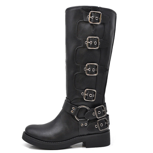 Stivali Da Donna Moto Motociclista Biker Anfibi Multi Fibbie RQ63 MP660-3