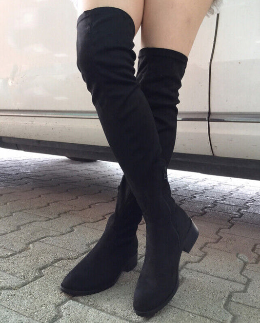 Stivali Alti Al Ginocchio Da Donna Aderenti Camoscio G618