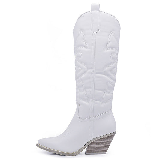 Stivali Alti Da Donna Texani Cowboy Cowgirl A Punta Con Tacco Medio 80-7 nero