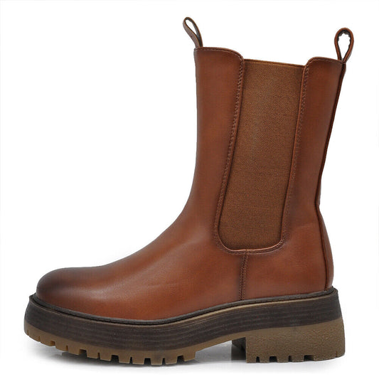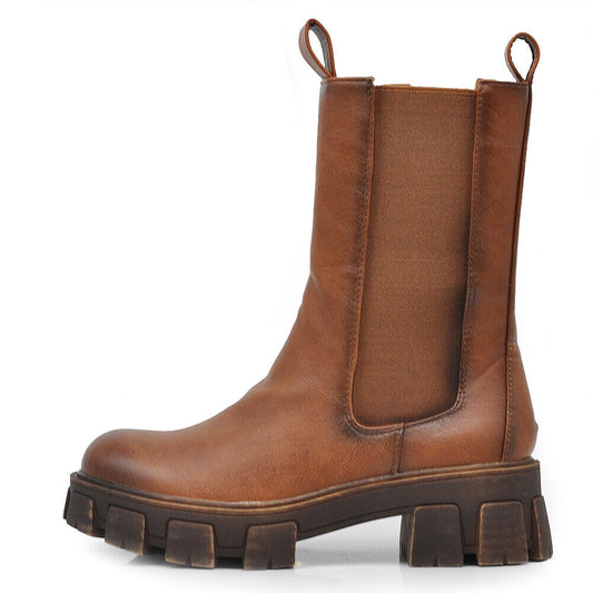 Stivaletti Chelsea Biker da Donna Elastici Con Platform Suola Track Pelle YG890