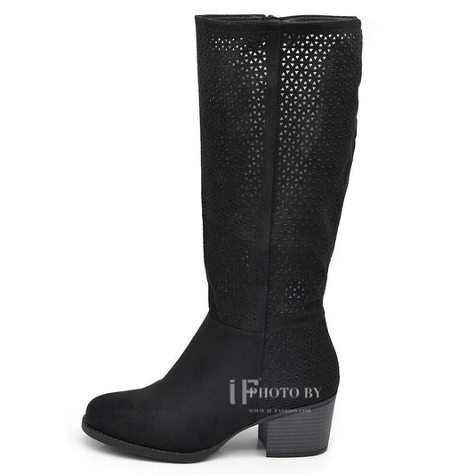 Stivali Primaverili Scamosciati Estivi Traforati Camperos Con Tacco Da Donna 665