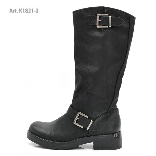 Stivali Da Donna Moto Motociclista Biker Anfibi Doppie Fibbie K1821-2