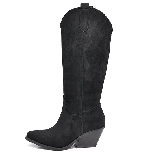 Stivali Alti Camperos Texani A Punta Ginocchio Western Camoscio Da Donna LY80-4