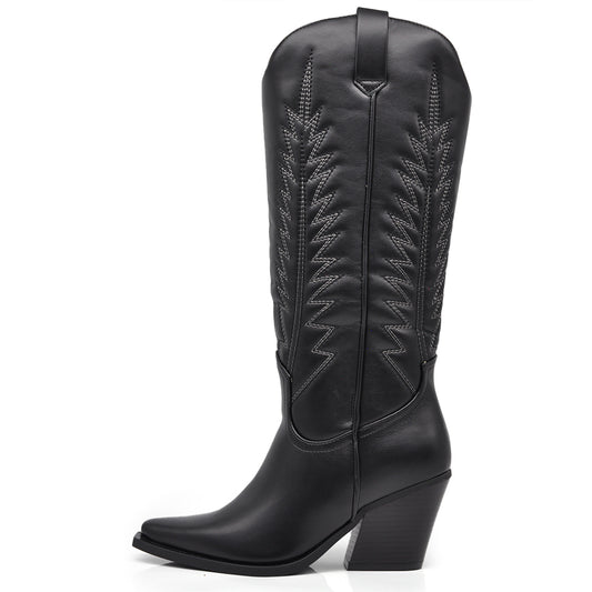 Stivali Alti Da Donna Texani Cowboy Cowgirl A Punta Con Tacco Medio 2701-6