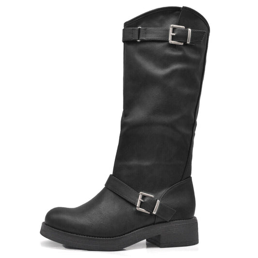 Stivali Da Donna Moto Motociclista Biker Anfibi Doppie Fibbie YG883