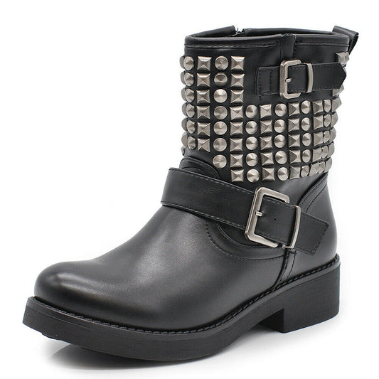 Stivaletti Donna Caviglia Anfibi Borchie Morbidi Motociclista Biker LY55-6 8081A RQ56