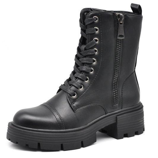 Stivaletti Stivali Anfibi Combat boots Da Donna Platform Zip GR-6646 nero camel