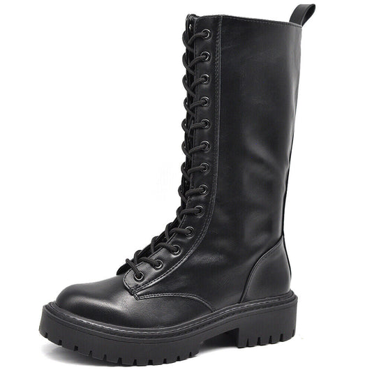 Anfibi Combat Alti Al Polpaccio Stivali Militari Con Lacci Da Donna MP369-13