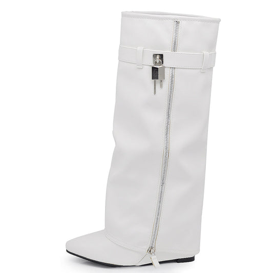 Stivali in ghetta A Punta Con Zeppa Luchetto Zip Cerniera Da Donna G690