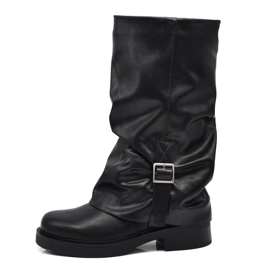 Stivali Da Donna Con Ghetta Risvolto Slouch cinturino fibbia decorativo MP2744-6 nero marrone