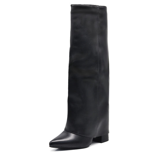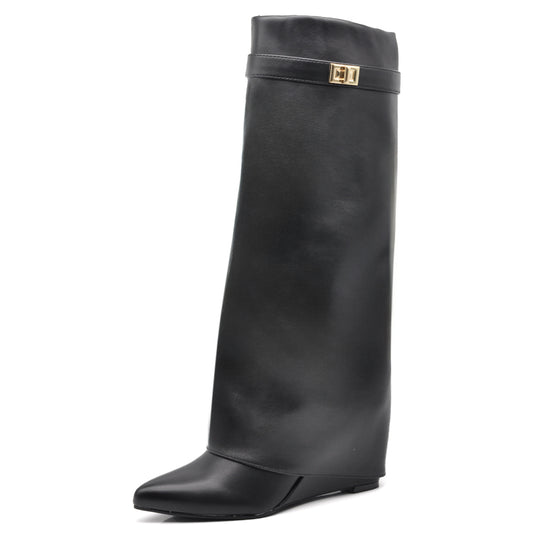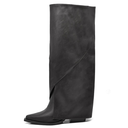 Stivali Donna A Punta Con Zeppa Stile Western – Alti al Ginocchio 6887