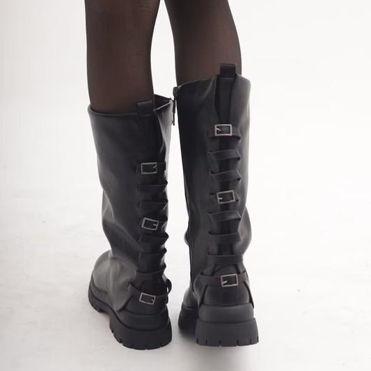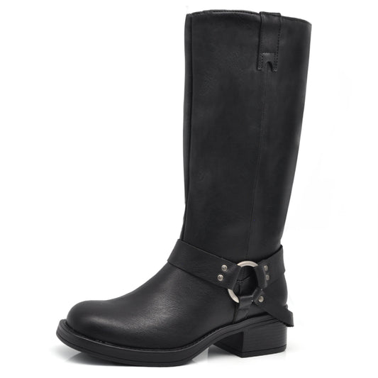 Scarpe Stivali da Donna Al Polpaccio Ginocchio Stile Biker Punk Rock Motociclista con Cinturino MP730