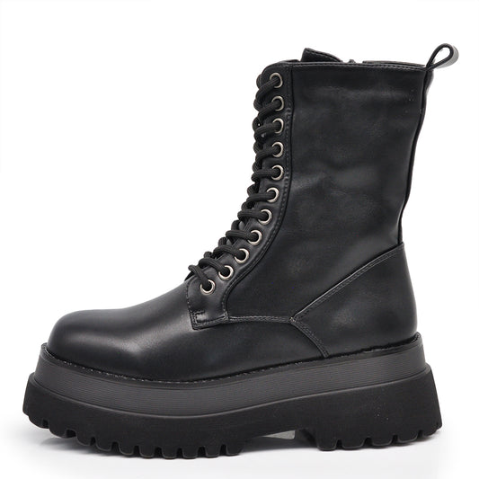 Stivali Stivaletti Platform Donna Anfibi combat boots lacci Platform YL273 nero